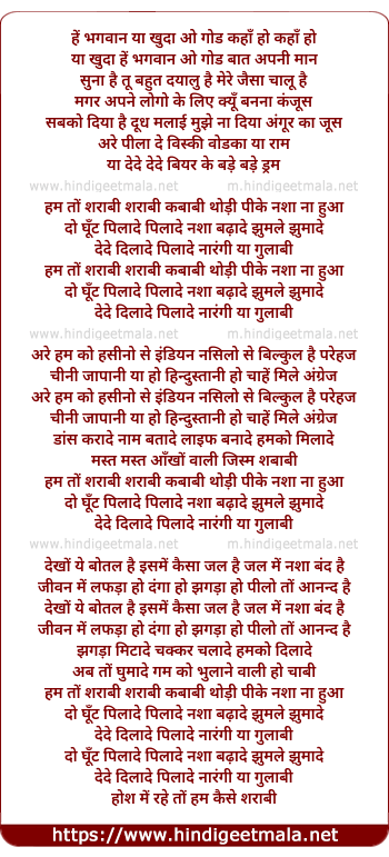 Lyrics of Hum To Sharabi, Sharabi Kababi - हम तों शराबी, शराबी कबाबी