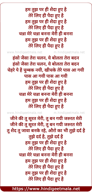 Lyrics of Hum Tujh Par Hi Shaida Huye - हम तुझ पर ही शैदा हुए