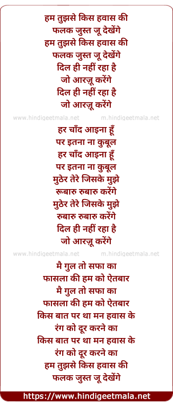Lyrics of Hum Tujhe Kis Hawas Ki - हम तुझे किस हवास की