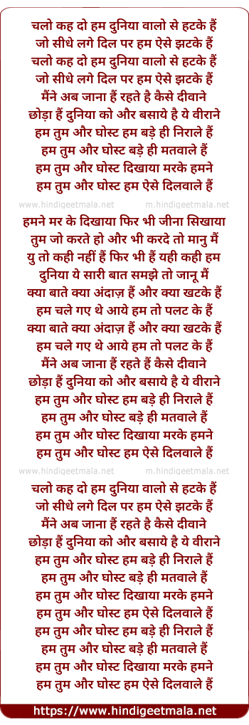 Lyrics of Hum Tum Aur Ghost (Title Song) - चलो कह दो हम दुनिया वालो से हटके हैं