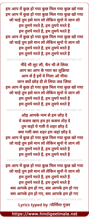 Poetic Translation - Lyrics of Hum Tum Pe Marte Hain (Title Song) - हम तुमपे मरते है