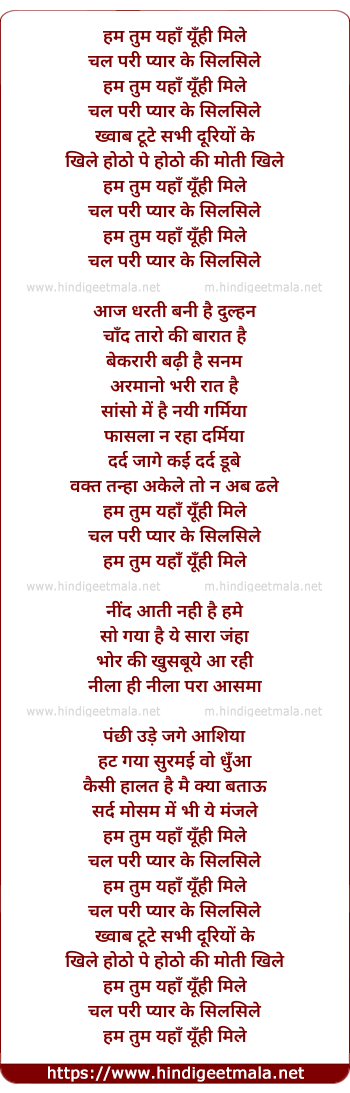 Lyrics of Hum Tum Yaha Yunhi Mile - हम तुम यहाँ यूँही मिले