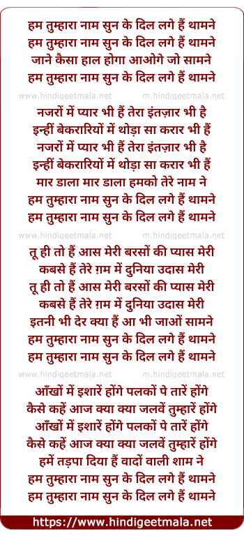 Lyrics of Hum Tumhara Naam Sun Ke - हम तुम्हारा नाम सुन के