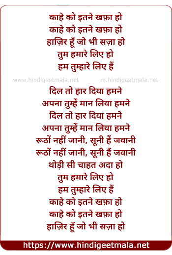 Lyrics of Hum Tumhare Liye Hai (Ii) - काहे को इतने खफ़ा हो