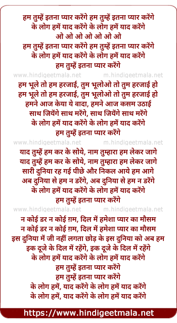 Lyrics of Hum Tumhe Itana Pyaar Karenge - हम तुम्हें इतना प्यार करेंगे