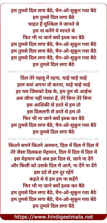 Lyrics of Hum Tumse Dil Laga Baithe (Male) - हम तुमसे दिल लगा बैठे, चैन-ओ-सुकून गवा बैठे
