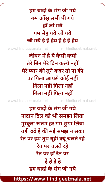 Lyrics of Hum Yaadon Ke Sang (Acoustic Version) - हम यादो के संग जी गये