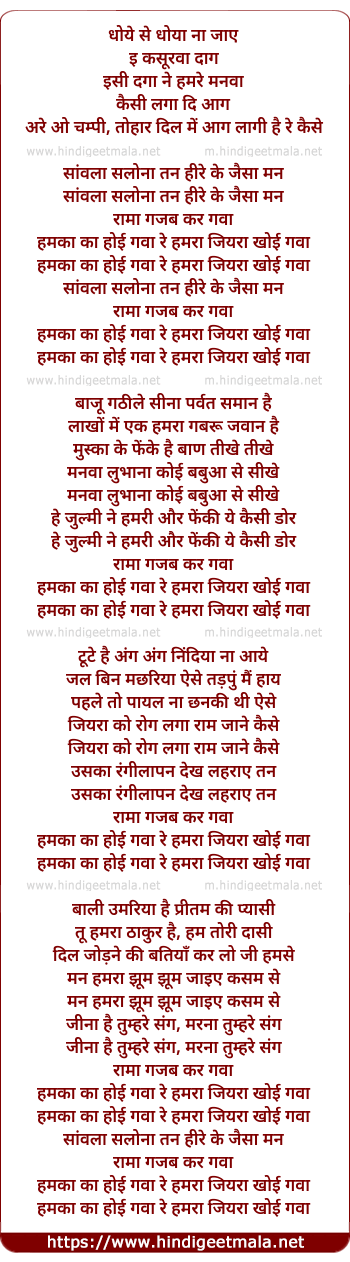 Lyrics of Humara Jiyara Khoi Gava - हमरा जियरा खोई गवा