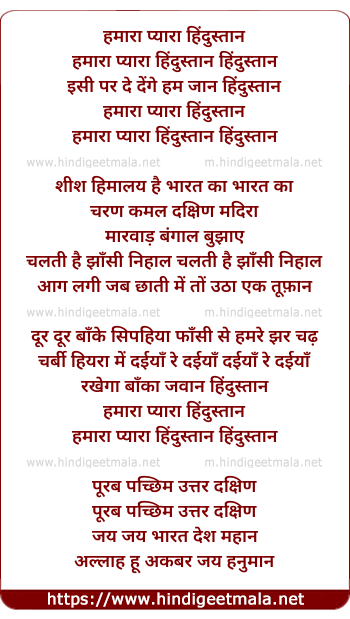 Lyrics of Humara Pyara Hindustan - हमारा प्यारा हिंदुस्तान