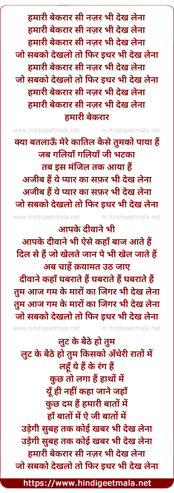 Lyrics of Humari Beqarar Si Nazar - हमारी बेकरार सी नज़र