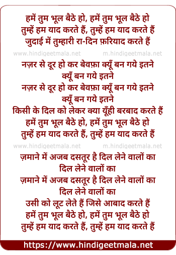 Lyrics of Hume Tum Bhul Baithe Ho - हमें तुम भूल बैठे हो