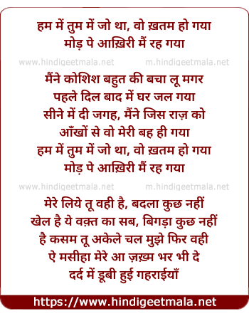 Lyrics of Hummein Tummein Jo Tha - हममें तुममें जो था