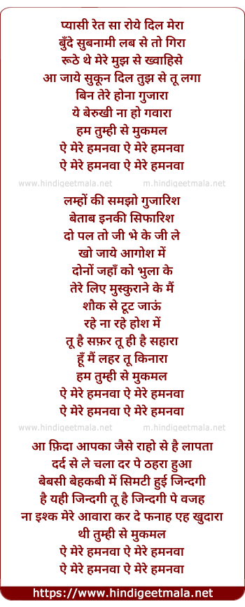 Lyrics of Hai Mere Humnava - है मेरे हमनवा