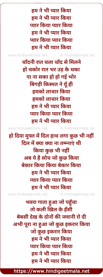 Lyrics of Humne Bhi Pyar Kiya Pyar Kiya Pyar Kiya - हमने भी प्यार किया प्यार किया प्यार किया