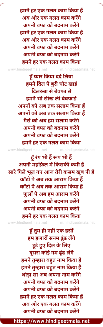 Lyrics of Humne Har Ek Galat Kaam Kiya Hai - हमने हर एक गलत काम किया हैं