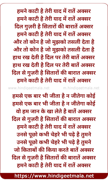 HUMNE KAATI HAI TERI YAAD MEIN RAATEIN AKSAR