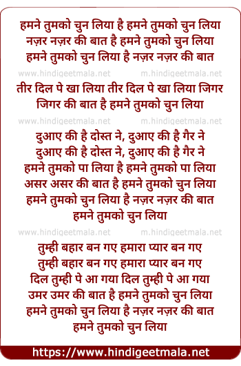 Lyrics of Humne Tumko Chun Liya - हमने तुमको चुन लिया