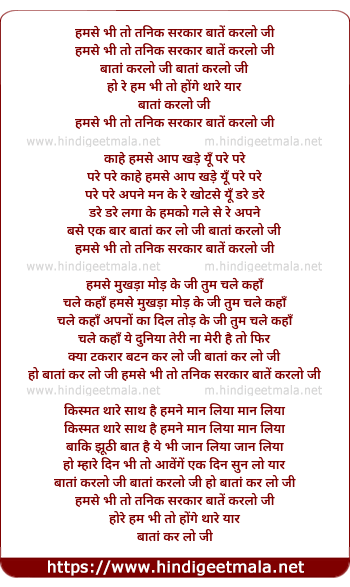 Lyrics of Humse Bhi Tanik Sarkaar Bata Kar Lo Ji - हमसे भी तो तनिक सरकार बातें करलो जी
