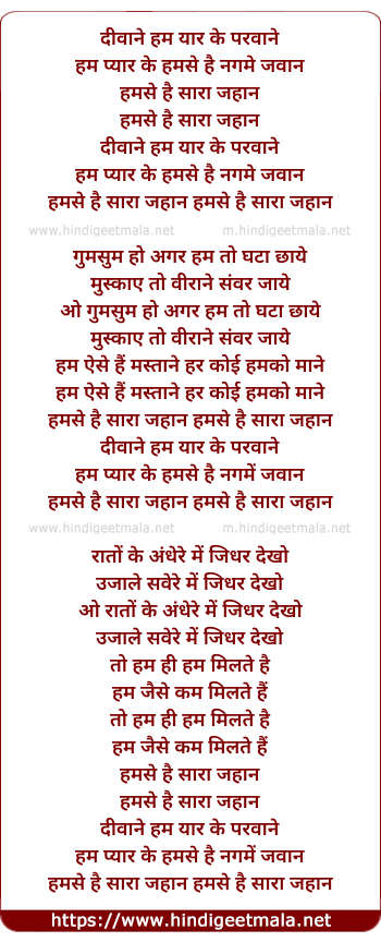 Lyrics of Humse Hai Saara Jahan - हमसे है सारा जहां
