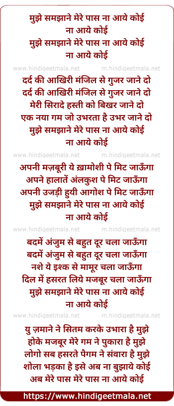 Lyrics of Humse Samjhane Mere Paas Na Aaye Koi - मुझे समझाने मेरे पास ना आये कोई