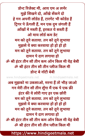 Lyrics of Hunterrr 303, Man Ko Tune Sataya - हंटर तीन सौ तीन, मन को तूने सताया