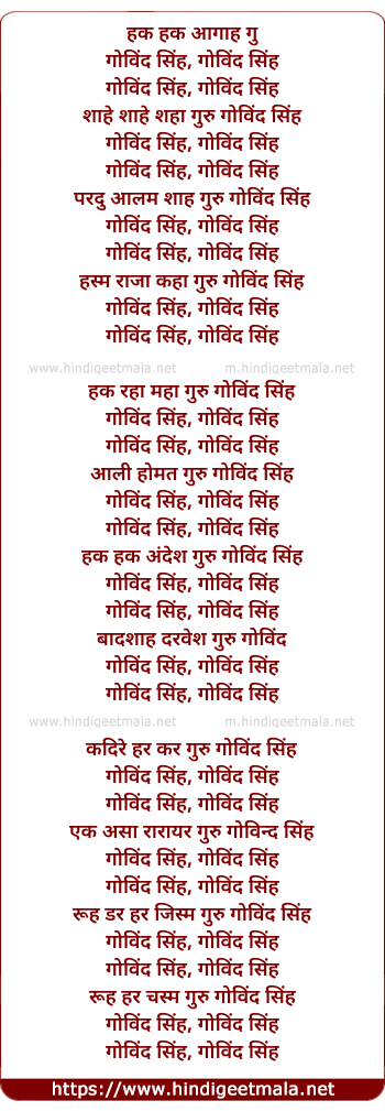 Lyrics of Huq Huq Aagah Guru Gobind Singh - हक हक आगाह गु