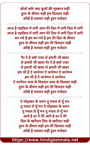 husn ke bimar sahi hum tere dildar sahi