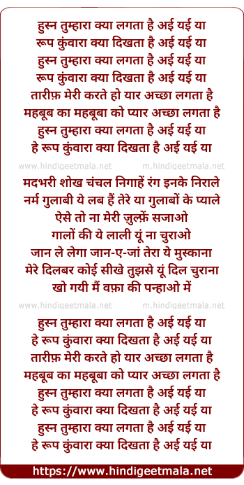 Lyrics of Husn Tumhara Kya Lagta Hai - हुस्न तुम्हारा क्या लगता है