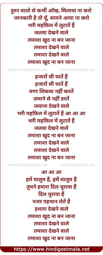 Lyrics of Husn Walo Se Kabhi Ankh - हुस्न वालो से कभीं आँख