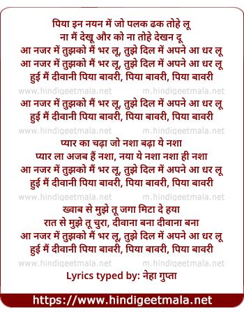 lyrics typed by: neha gupta
