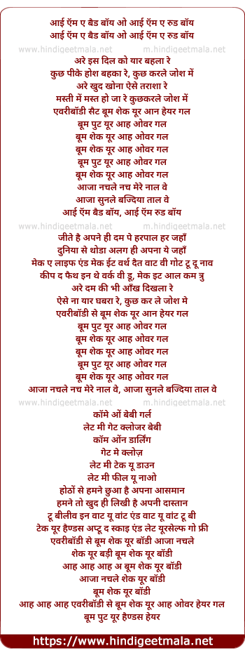 Lyrics of I Am A Bad Boy, I Am A Rude Boy - आई ऍम ए बैड बॉय ओ आई ऍम ए रुड बॉय