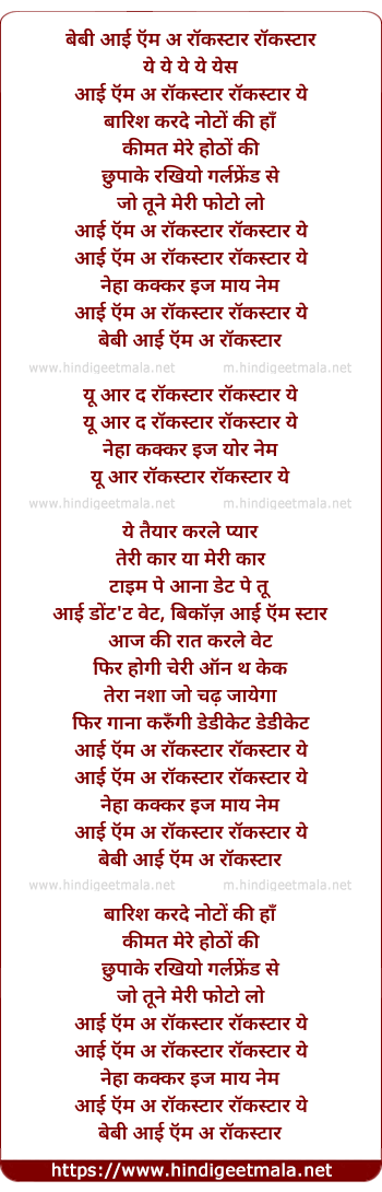 Poetic Translation - Lyrics of I Am A Rockstar - बेबी आई ऍम अ रॉकस्टार रॉकस्टार