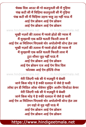 Lyrics of I Am Broken (Trance) - आई ऍम ब्रोकन(ट्रांस)