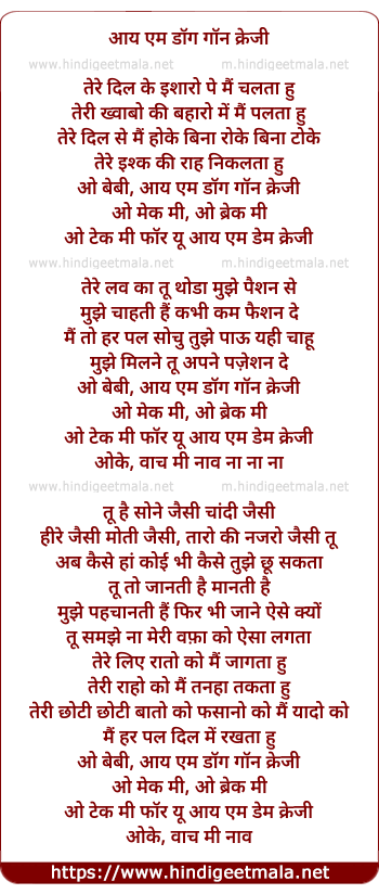 Lyrics of I Am Dog Gone Crazy - आई एम डॉग गॉन क्रेजी