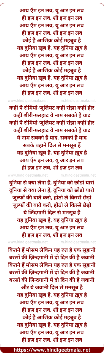 Lyrics of I Am In Love, Koi Hai Aashiq Koi Mahabub Hai - आय ऍम इन लव, कोई है आशिक़ कोई महबूब है