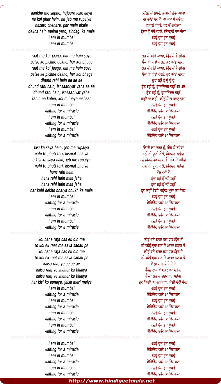 Comments for lyrics of song "I Am In Mumbai"