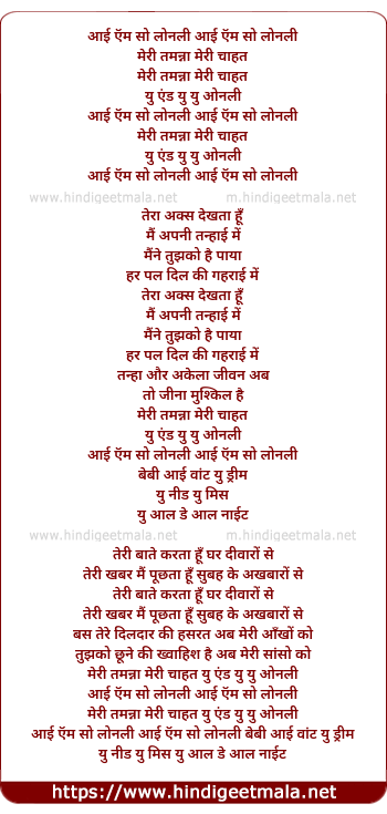 Lyrics of I Am So Lonely - आई ऍम सो लोनली