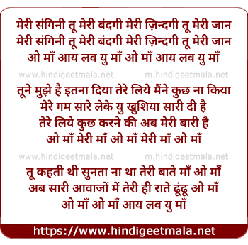 Lyrics of I Love You Maa(Meri Sangini Tu) - मेरी संगिनी तू मेरी बंदगी मेरी ज़िन्दगी तू मेरी जान
