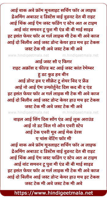 Lyrics of I Walk Away From The Moonlight - आई वाक अवे फ्रॉम मूनलाइट सर्चिंग फॉर अ लाइफ