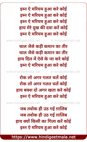 Lyrics of Ibn Ae Mariyam Hua Kare Koi - इब्न ऐ मरियम हुआ करे कोई