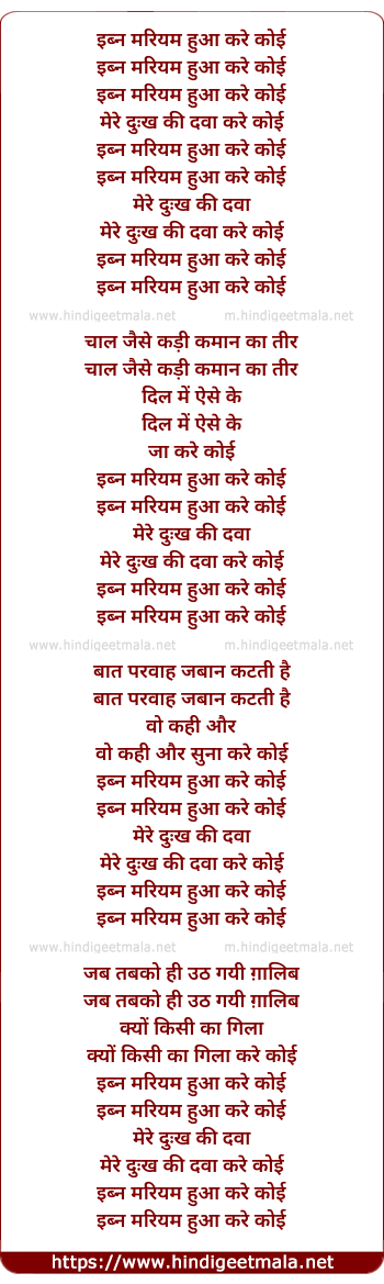 Lyrics of Ibn Mariyam Hua Kare Koi - इब्न मरियम हुआ करे कोई