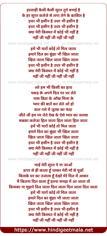 Lyrics of Idhar Bhi Hasin Hai Udhar Bhi Hasin Hai - इधर भी हसीन है उधर भी हसीन है