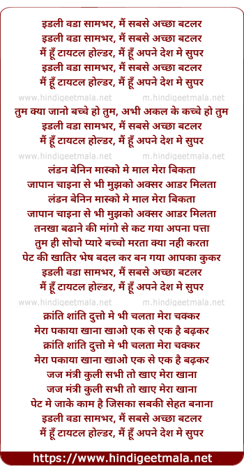 Lyrics of Idli Wada Sambhar Me Sabse Achcha - इडली वडा सामभर में सबसे अच्छा