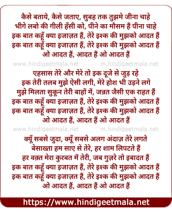 ik baat kahu kya ijazat hai, tere ishq ki mujhko aadat hai