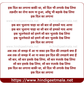 Lyrics of Ik Dil Kaa Lagana Baqi Tha - इक दिल का लगाना बाकी था