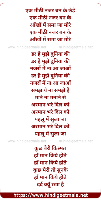 Lyrics of Ik Meethi Nazar Banke - एक मीठी नजर बन के