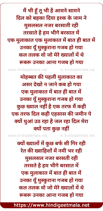 Lyrics of Ik Mulaqat Me Baat Hi Baat Me - इक मुलाकात में बात ही बात में