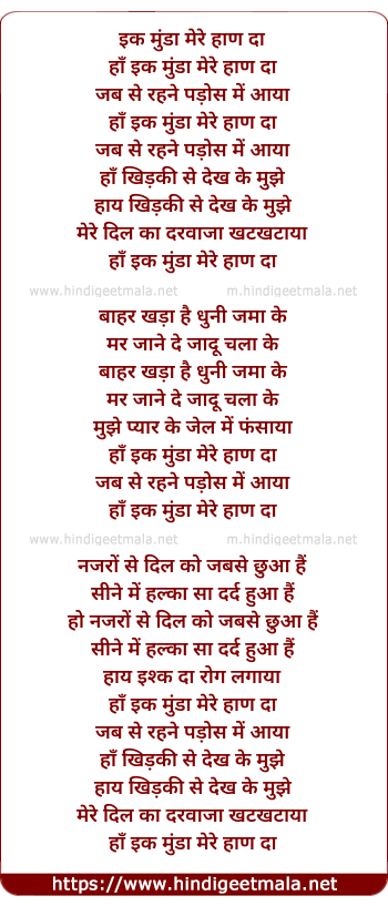Lyrics of Ik Munda Mere Ha - इक मुंडा मेरे हाण दा