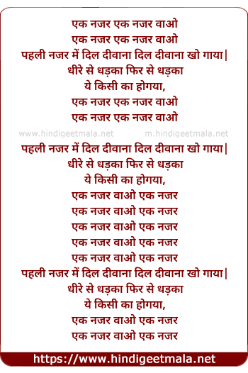 Lyrics of Ik Nazar