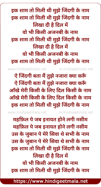 Lyrics of Ik Sham To Milee Thi - इक शाम तो मिली थी मुझे जिंदगी के नाम